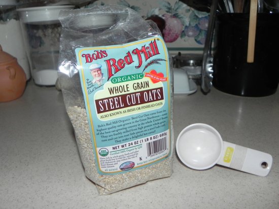 There are several different brands of steel-cut oats that you can buy, but I've been pretty happy with Bob's Red Mill. I actually buy quite a few of Bob's products, so this is a logical choice for me. Also, the measurements in this process are for a single serving size, but the proportions can easily be doubled or tripled, depending on the number of servings you'd like to make.